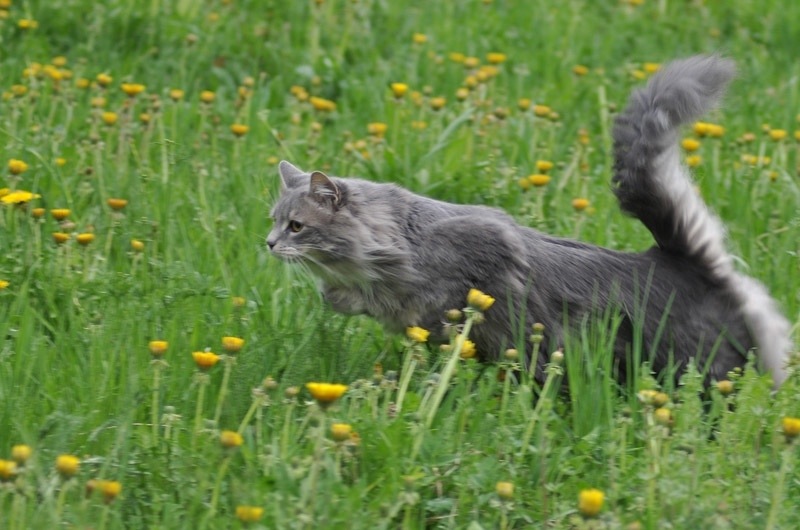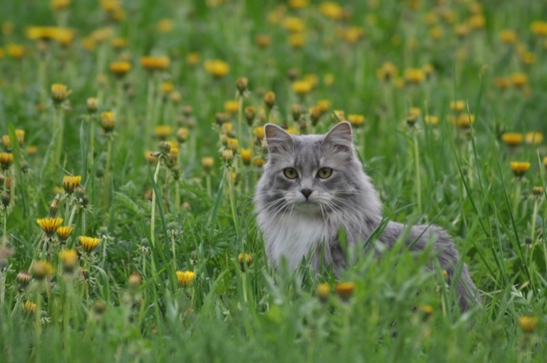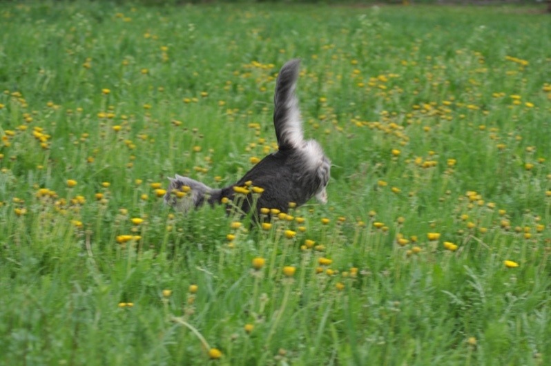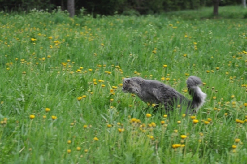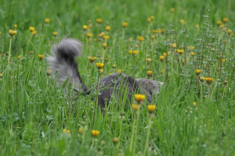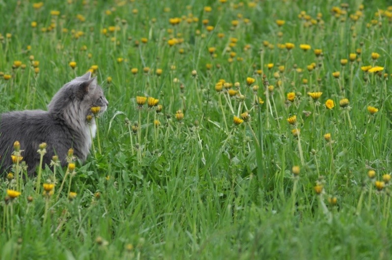 Alle volte basta poco per rendere felice un gatto: un prato pieno di tarassaco, dei sassolini gettatati qua e là e un pò di incitamento.