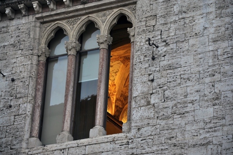 Bellissima la porta del Palazzo dei Priori sul lato di Corso Vannucci