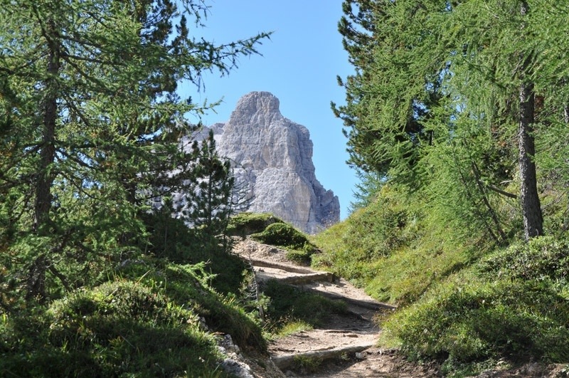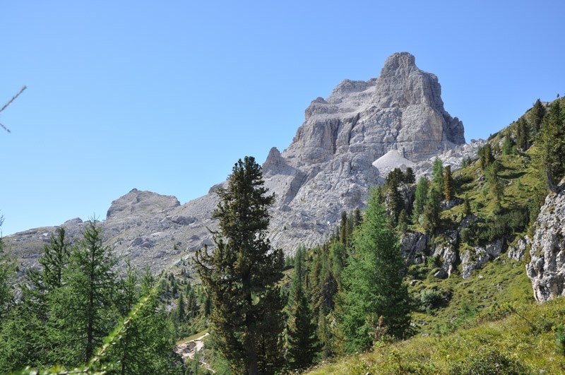 Sono a solo 15 km dalla regina delle Dolomiti, ma io sono venuto qui per ammirare le vette dolomitiche, non certo le vetrine dei negozi. Ecco la cima della Tofana di Rozes. Mi guarda dall’alto dei suoi 3225 metri e incute un certo timore.