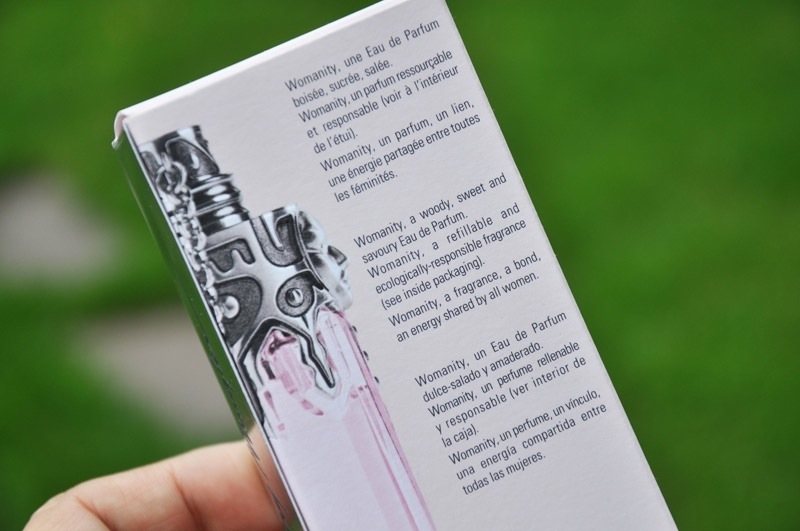 Pensate ad una profumazione salata composta da aromi di foglia di fico Bellona, ma anche da parte del suo legno e del suo latte. E poi uova di storione Osetra che hanno il fondamentale compito di infondere nella fragranza quell’odore di sale marino che il sale stesso non ha. Womanity si trasforma appena lo si indossa. Parte forte con uno shock olfattivo per poi divenire velocemente fresco e rassicurante. Si sentono note agrumate leggermente acri e tonalità acquatiche e solari.